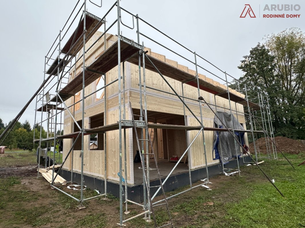 Moderní dřevostavba s obytným podkrovím a praktickým dispozičním řešením