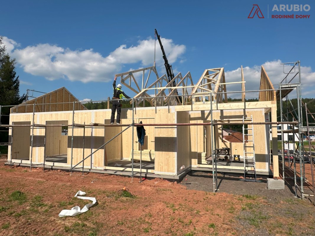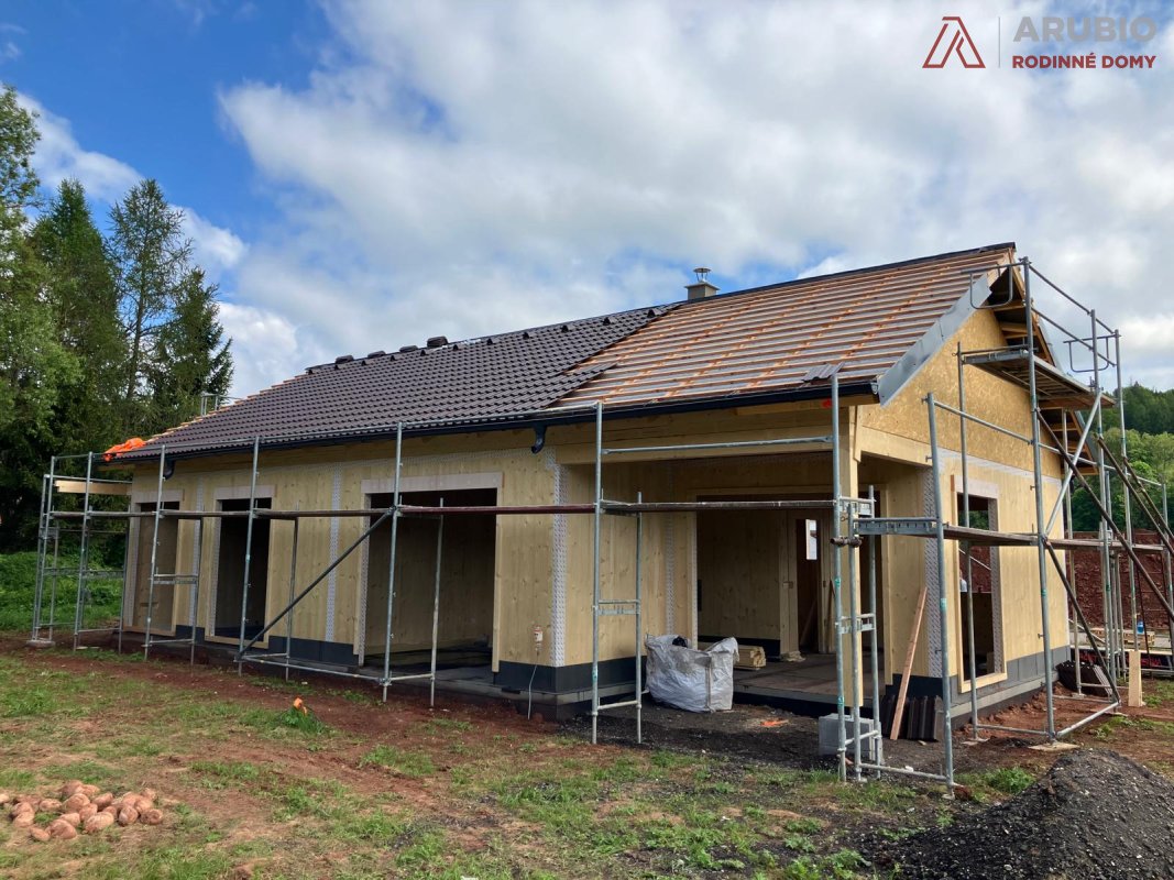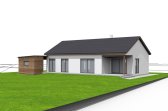 Jedná se o jednopodlažní bungalov bez obytného podkroví. Stavba je navržena jako moderní dřevostavba s konstrukčním systémem DEKPANEL, tvořeným masivními šroubovanými panely. Tento systém zajišťuje vysokou stabilitu, přesnost provedení a dlouhou životnost. Rodinný dům je zastřešen sedlovou střechou s přesahem, která dodává stavbě charakter a ochranu proti počasí. Součástí obytného prostoru je architektonický výklenek, jenž vytváří krytou venkovní terasu – ideální pro relaxaci a propojení s okolní zahradou.
