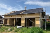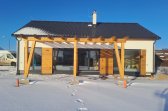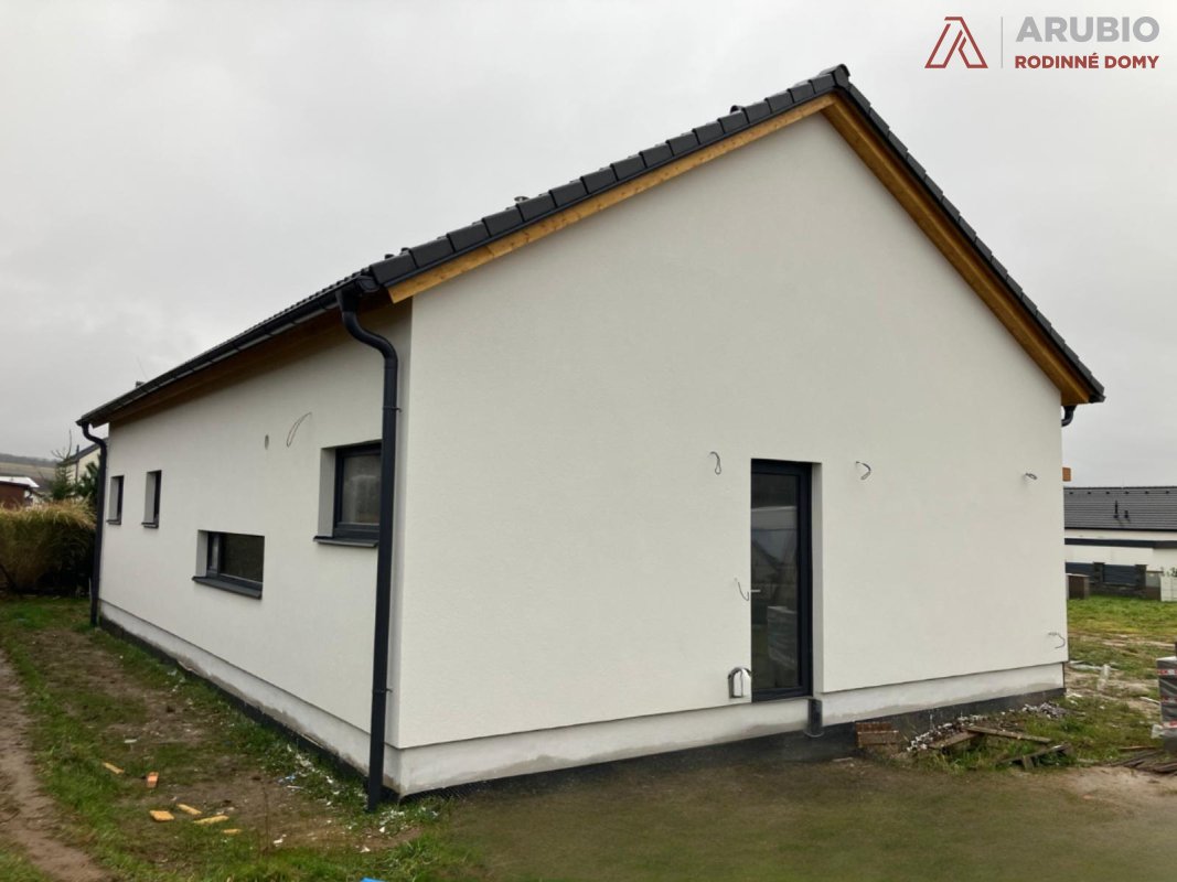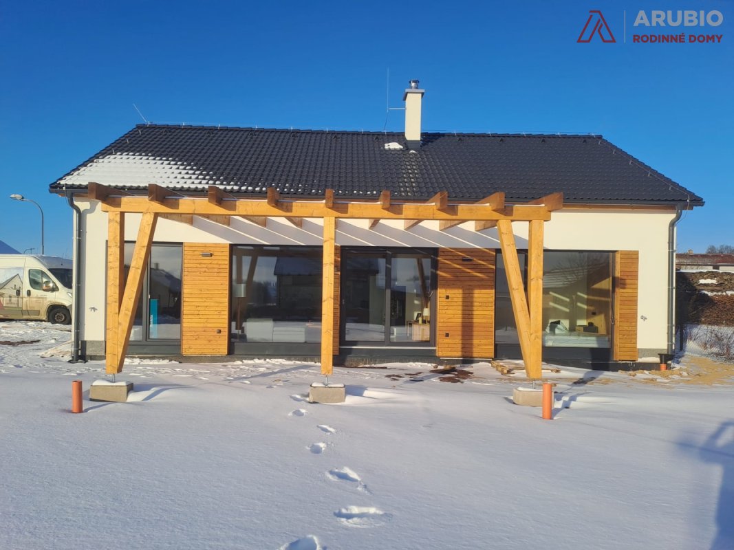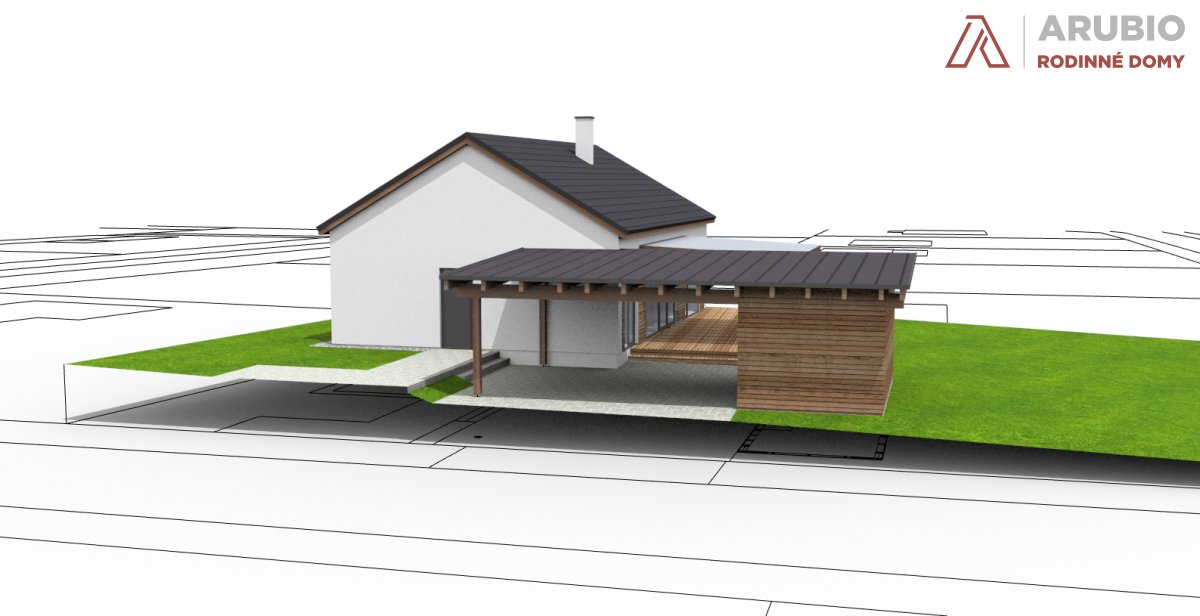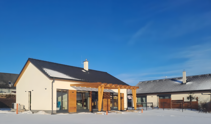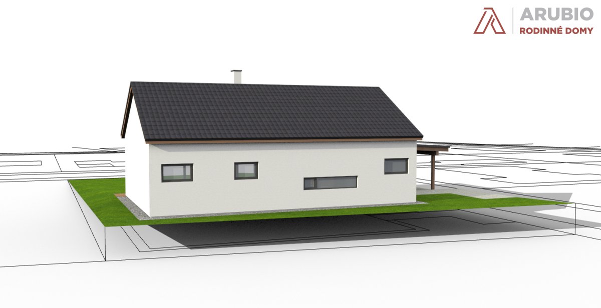 Jednopodlažní řešení nabízí přirozený pohyb bez schodů a jasně odděluje společné a klidové zóny. Vše je navrženo tak, aby dům fungoval přirozeně a bez zbytečné složitosti. Sedlová střecha a čisté linie dávají domu nadčasový vzhled, který zapadne do okolní zástavby i krajiny.