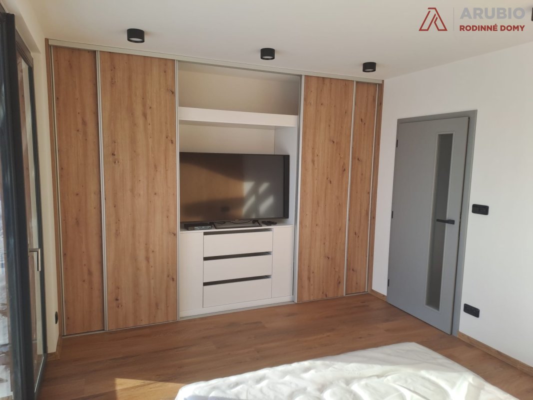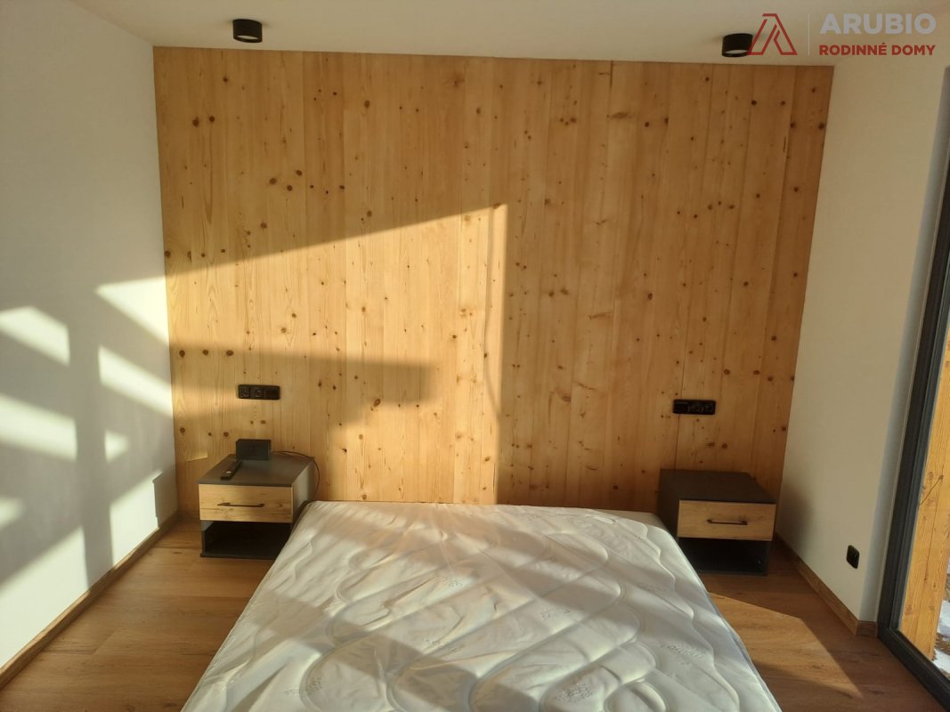 Soukromá část domu nabízí ložnici, pokoj a pracovnu – klidná zákoutí pro odpočinek, práci i soukromí každého člena rodiny. Celý dům je navržen tak, aby byl praktický, útulný a snadno přizpůsobitelný každodenním potřebám.