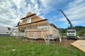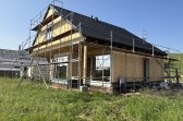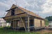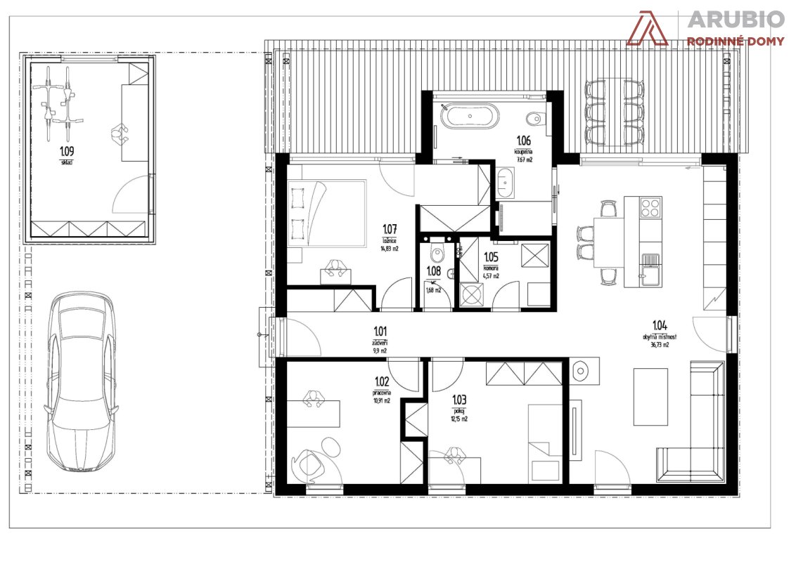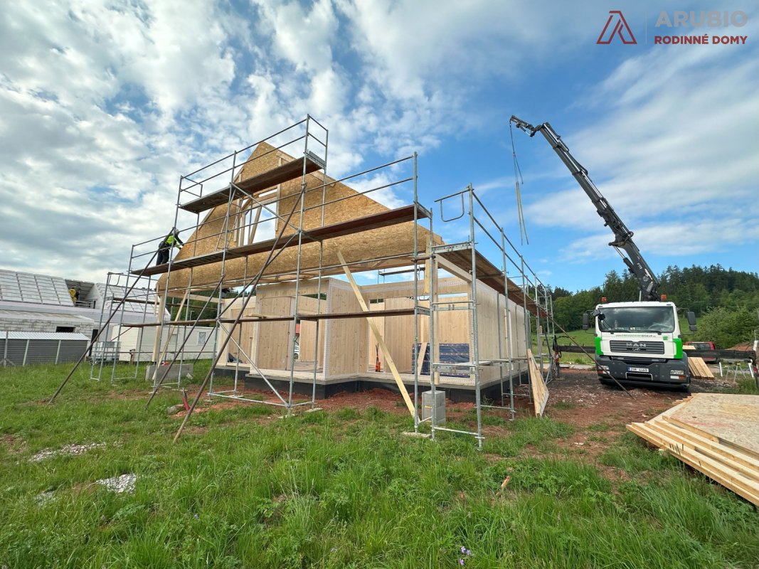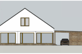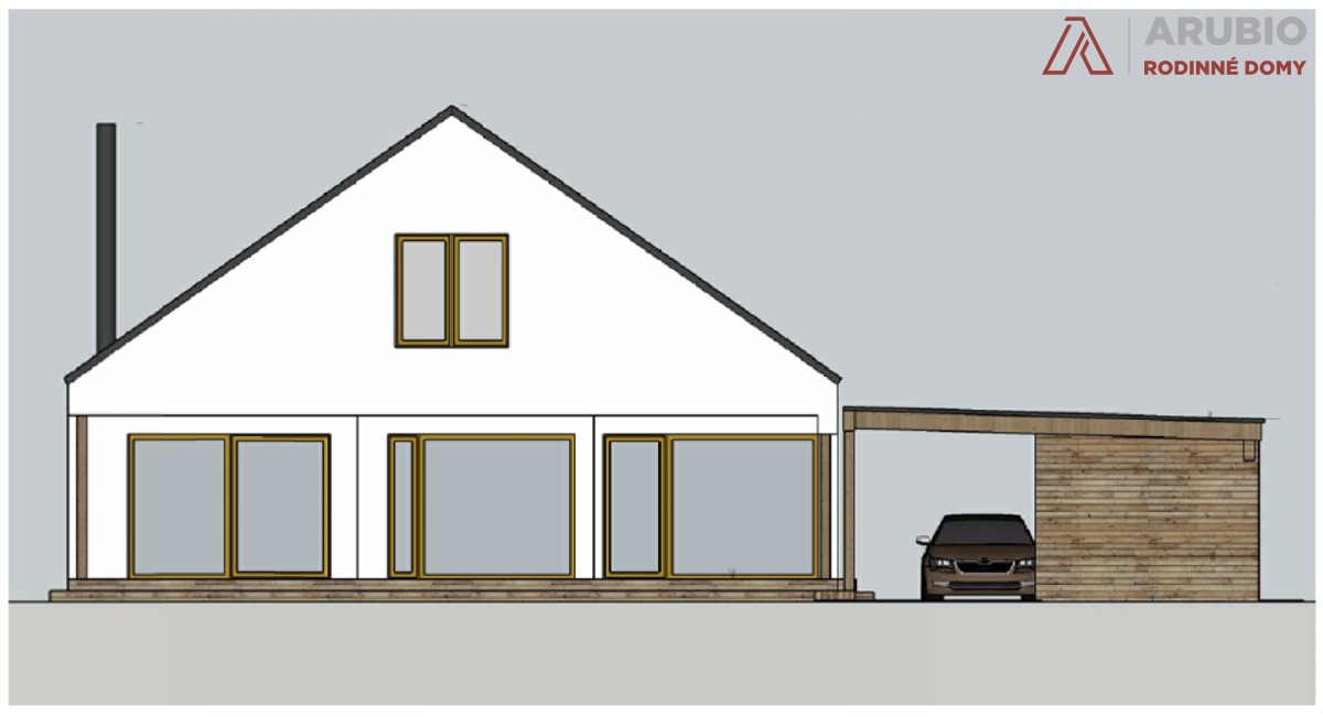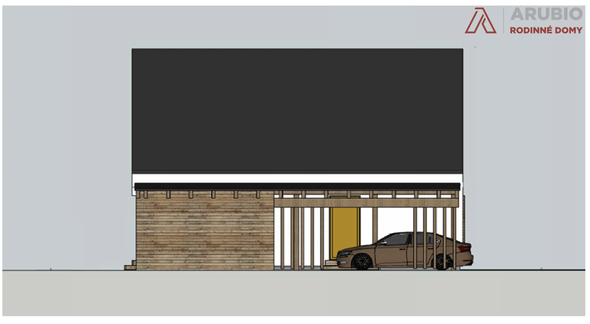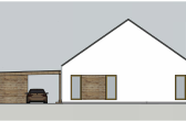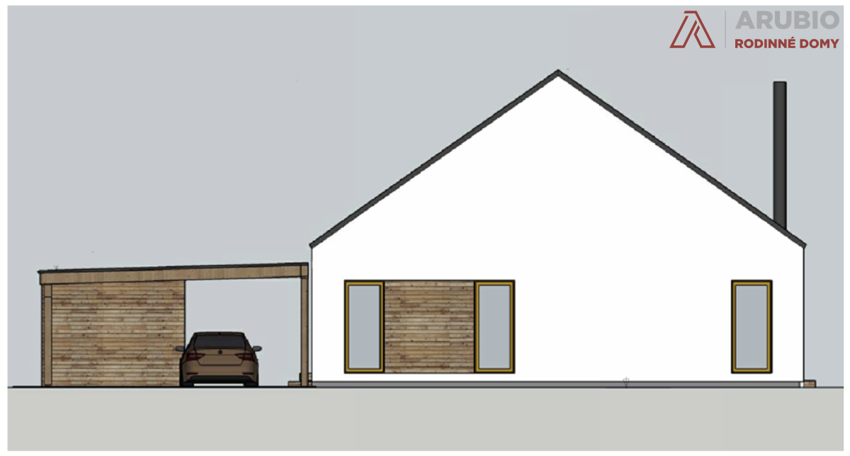 Moderní rodinný dům navržený jako jednopodlažní objekt představuje harmonii čistých linií, funkčnosti a přírodních materiálů. Konstrukčně je řešen jako dřevostavba z masivních DEK panelů, která nabízí nejen pevnost, ale i zdravé a příjemné vnitřní prostředí. Kompaktní obdélníkový půdorys o rozměrech 10,70 × 12,20 m a sedlová střecha podtrhují nadčasovou siluetu domu.