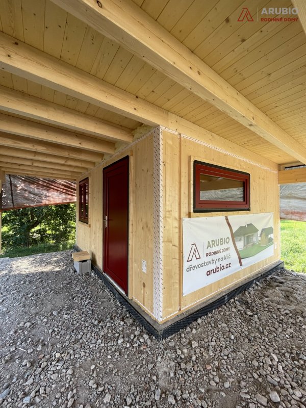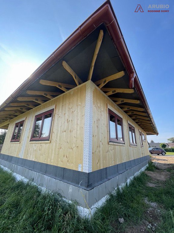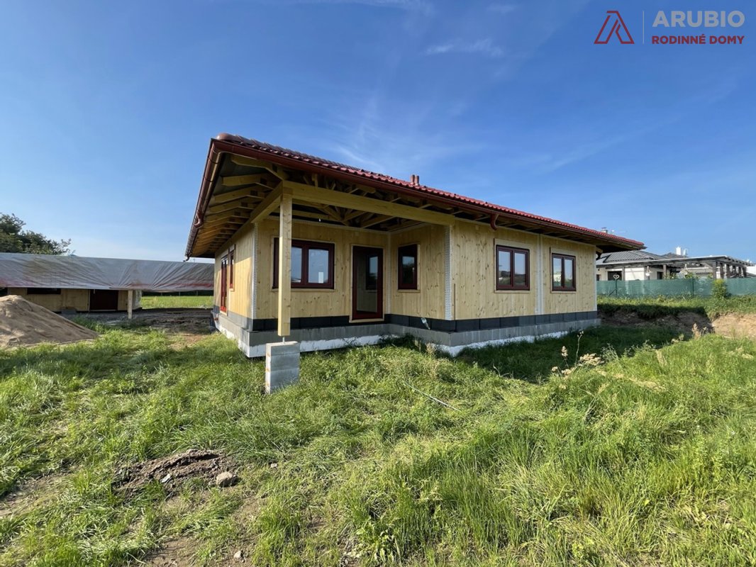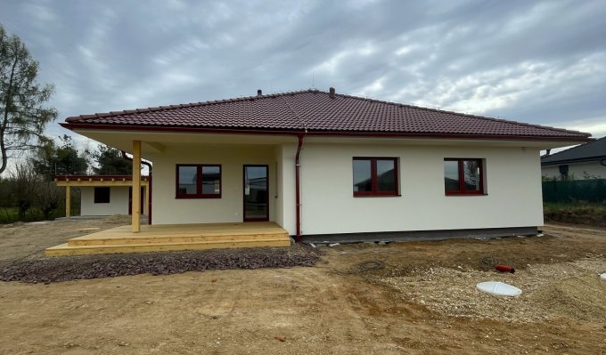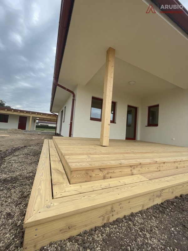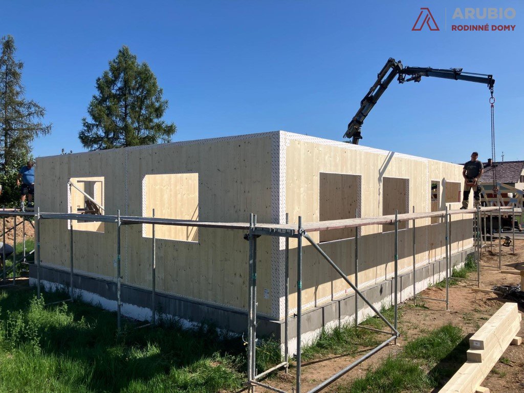 Moderní jednopodlažní rodinný dům s dispozicí 5+kk byl navržen s důrazem na pohodlí, praktičnost i přirozenou atmosféru skutečného domova. Nabízí bezbariérové řešení bez podsklepení a obytného podkroví, díky čemuž je celý prostor přehledný, vzdušný a maximálně funkční. Dřevostavba z masivních konstrukčních panelů přináší nejen pevnost a dlouhou životnost, ale také příjemné vnitřní klima a pocit tepla, který je pro rodinné bydlení tak důležitý. Jednoduchý obdélníkový půdorys doplňuje elegantní stanová střecha s přesahem, která domu dodává harmonický a nadčasový výraz.